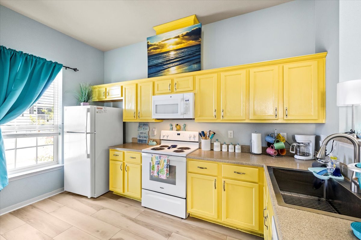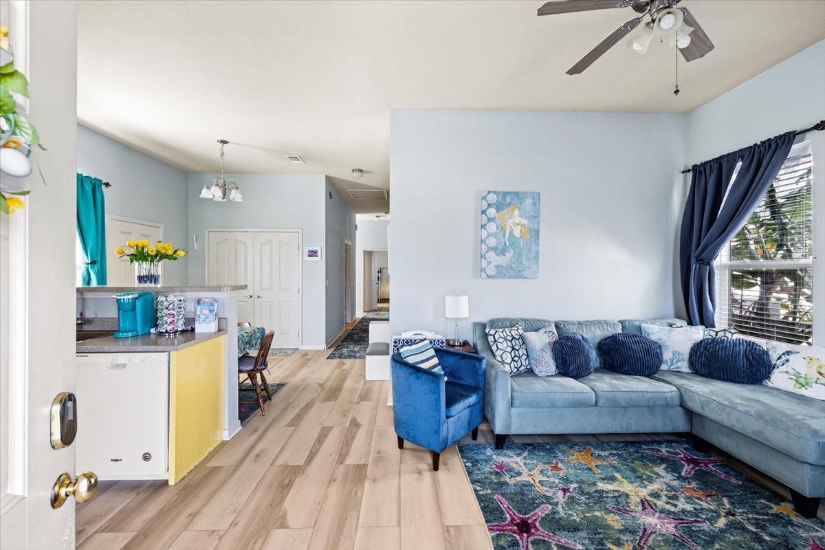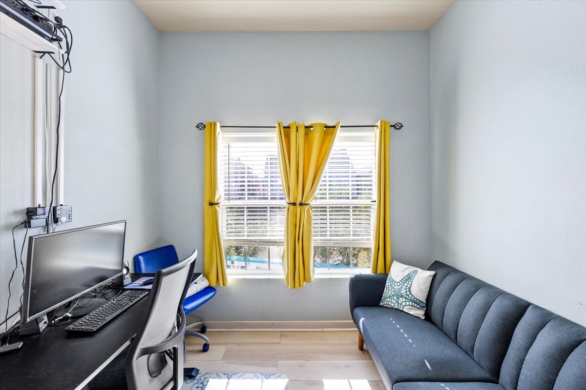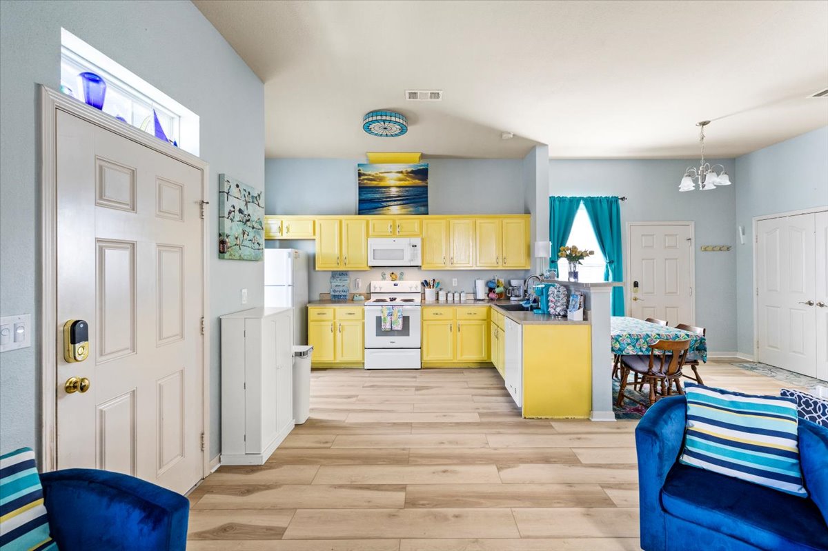 Beach-bound and barrier-free! Whether you use a wheelchair, walker, or wagon, at Ocean’s 16Eleven, your family and fur-babies can relax and work remotely just 200 steps to the sand! Enjoy the gulf breeze and listen to the waves from the front porch. A stocked kitchen, three bedrooms, two full baths, and an office optimized for remote work make our beach retreat an easy home away from home! *8 adults can sleep comfortably, or 4-5 adults and 3-4 kids*