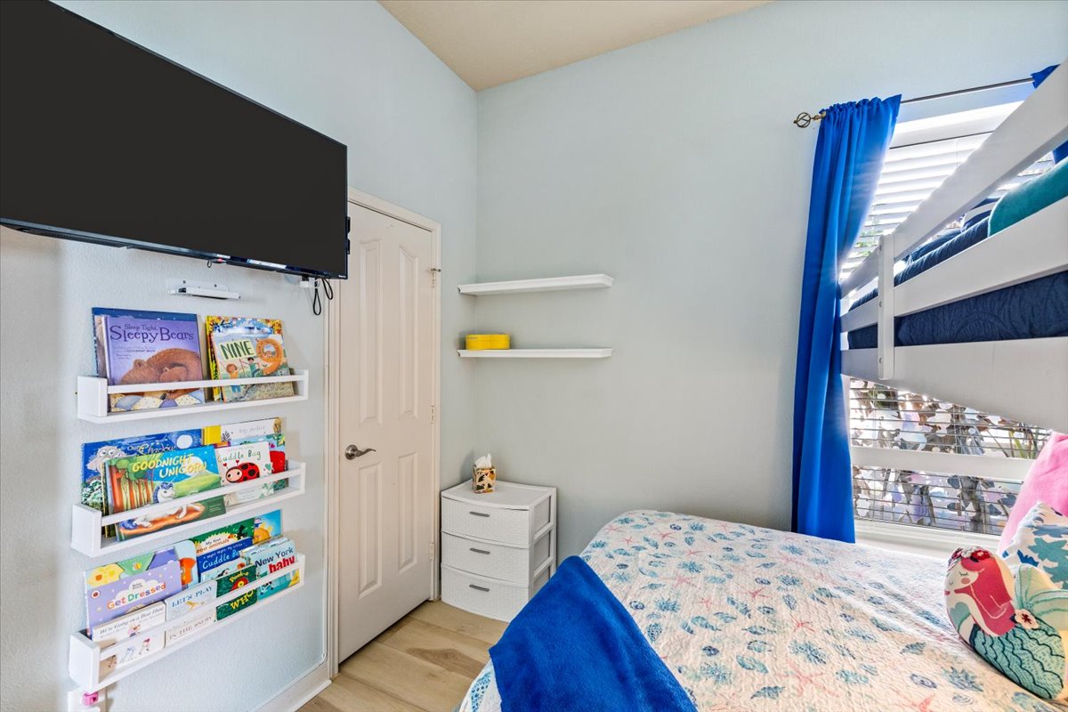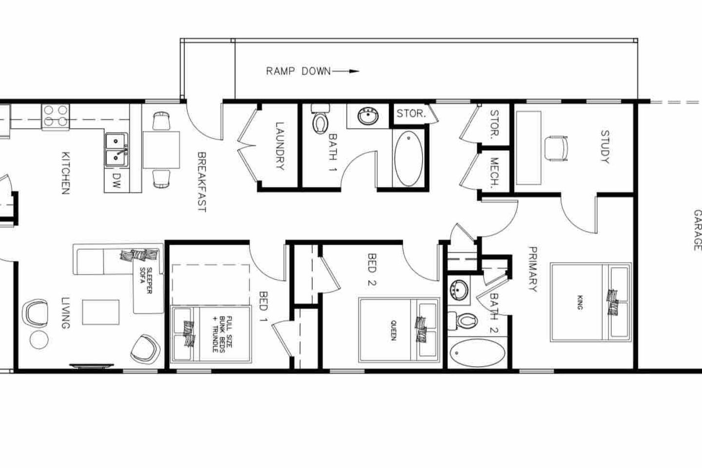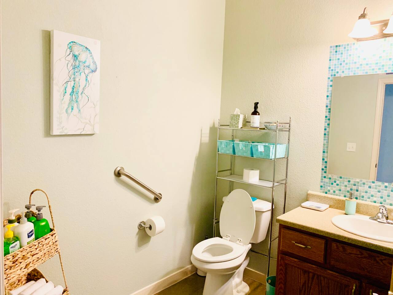 Our house was originally built for a person in a wheelchair, and we’ve found that the accessible design makes it an easy and comfortable space for all people and pets to stay with these features: - no steps in the house, other than the front porch - all doorways are 36” wide - grab-bars in both bathrooms - bathtub transfer bench - concrete ramp to the side door gives easy access for wheelchairs and strollers - retractable baby gates on the porch and ramp keep children and pets safe as needed Primary bedroom: - king-sized bed - en suite full bathroom - adjacent study/office set up with high-speed internet, monitor, and everything you need to work comfortably and efficiently away from home. Other bedrooms: - queen bedroom - bunk bedroom w/ full bed below and a twin bunk above - large full bathroom in the hallway between queen & bunk bedrooms Living room: - sleeper sofa - smart TV - games, puzzles, books & magazines Kitchen: - fully-stocked with cookware & spices - flexible seating for 4+ people - dishwasher - washer & dryer - tankless water heater Baby/kid items available: - mini-crib - toddler cot - misc. books, toys, and games A small fenced front yard gives pups an outdoor space to enjoy while waiting for their beach walk! There are 2 street parking places currently. We hope to have our garage available for parking soon. *Our family moved into the house 3 years ago (for a temporary stay that lasted longer than expected because we loved being there so much!), which is why there is a gap in reviews -- we just re-listed this summer after moving to the other side of the neighborhood.*