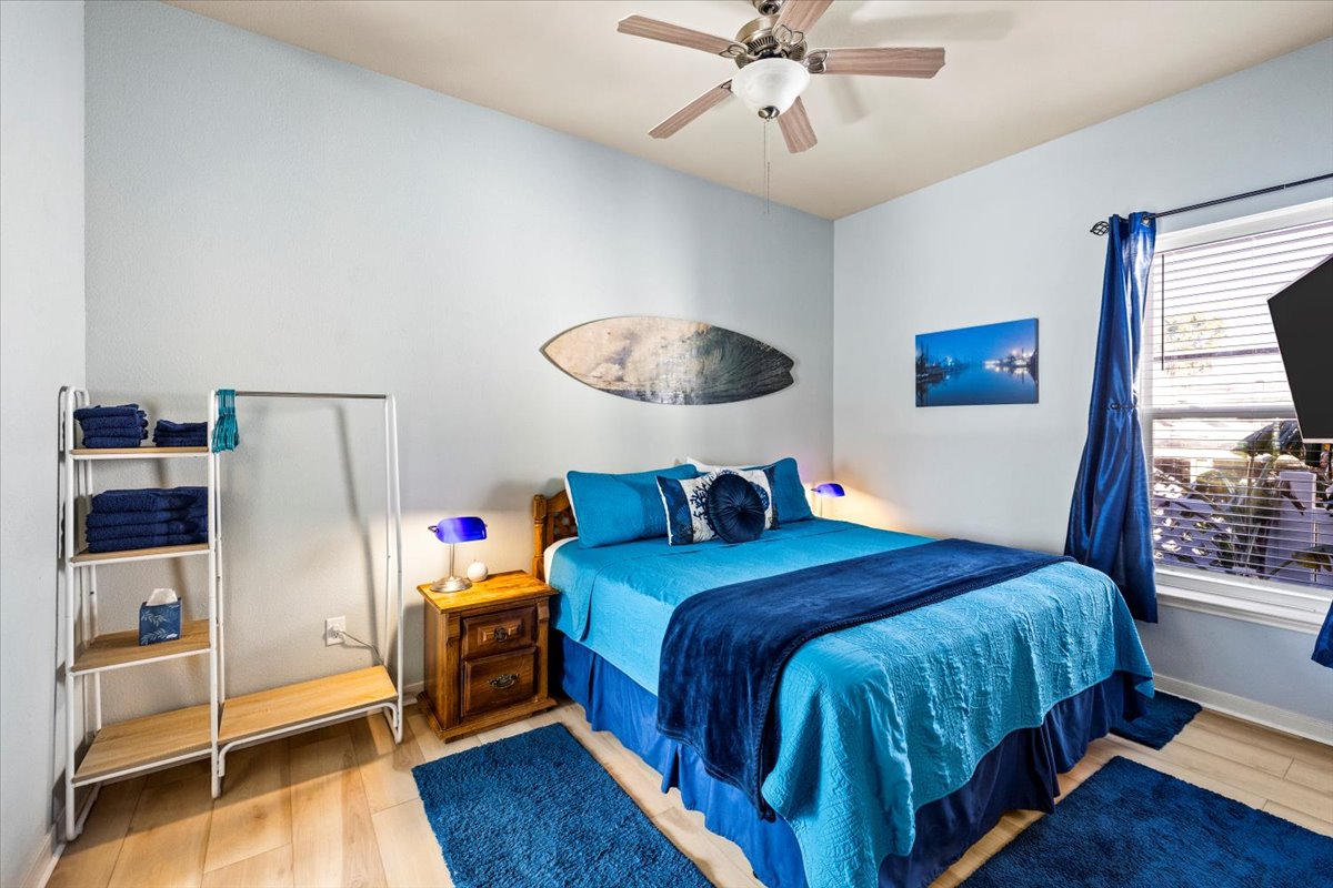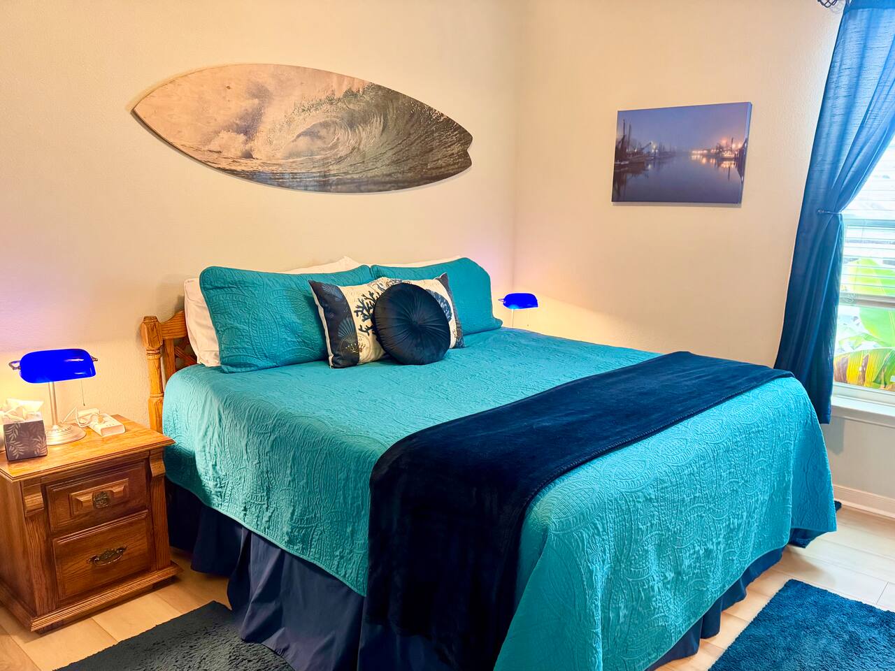 It is a 3 minute walk from our front porch steps to the Seawall's stairs to the sand. The Pleasure Pier amusement park and the 1892 Bishop's Palace are both about a 15 minute walk, or a 3 minute drive away. The Strand and UTMB are a 5 minute drive. Check out our guide when you visit for more local tips and info on nearby restaurants and activities!